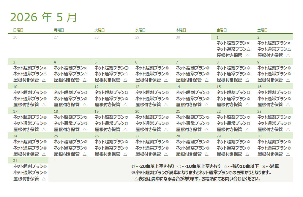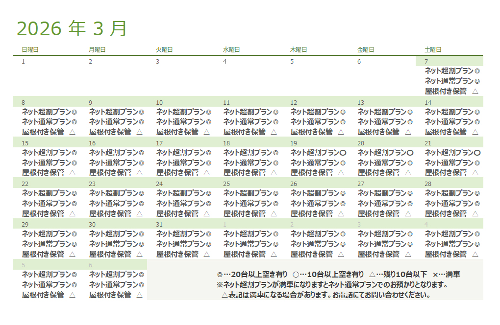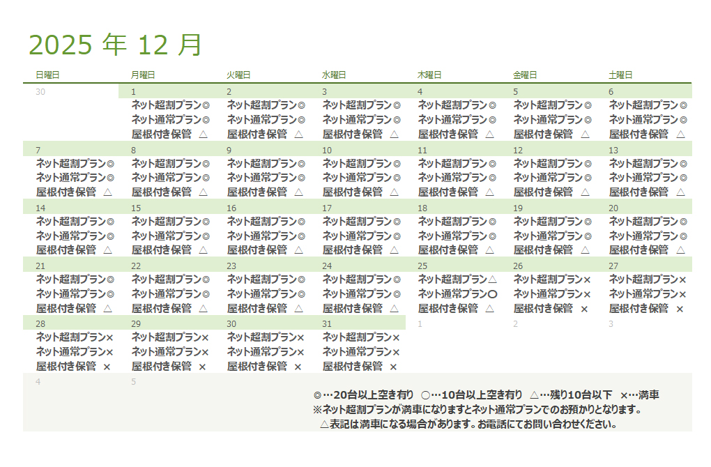 屋内駐車場預かりサービス