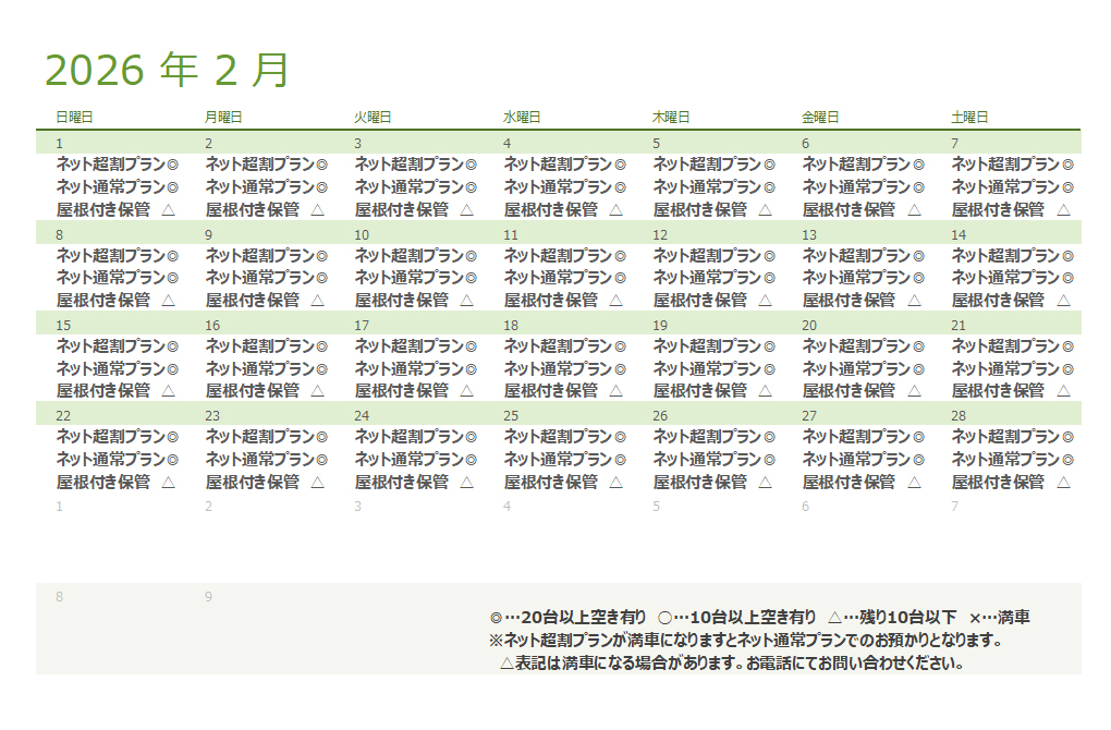 屋内駐車場預かりサービス